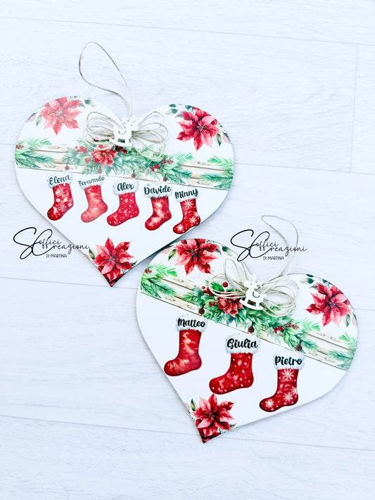 Decorazione natalizia cuore in legno con frase incisa e fiocco scozzese