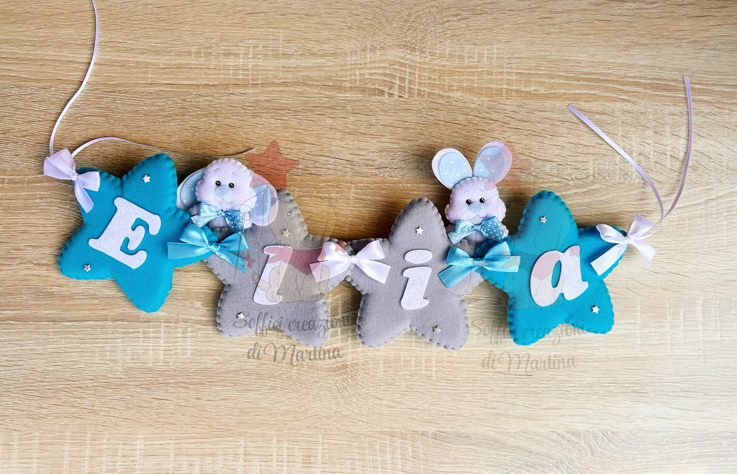 NB to purchase this item it is necessary to add to the cart how many letters and animals you would like, for example a banner with the name "Aurora" and two animals will be added to the cart 8 quantities (6 letters + 2 decorations) or if you only want the stars with the letters , you will need to add 6 items.