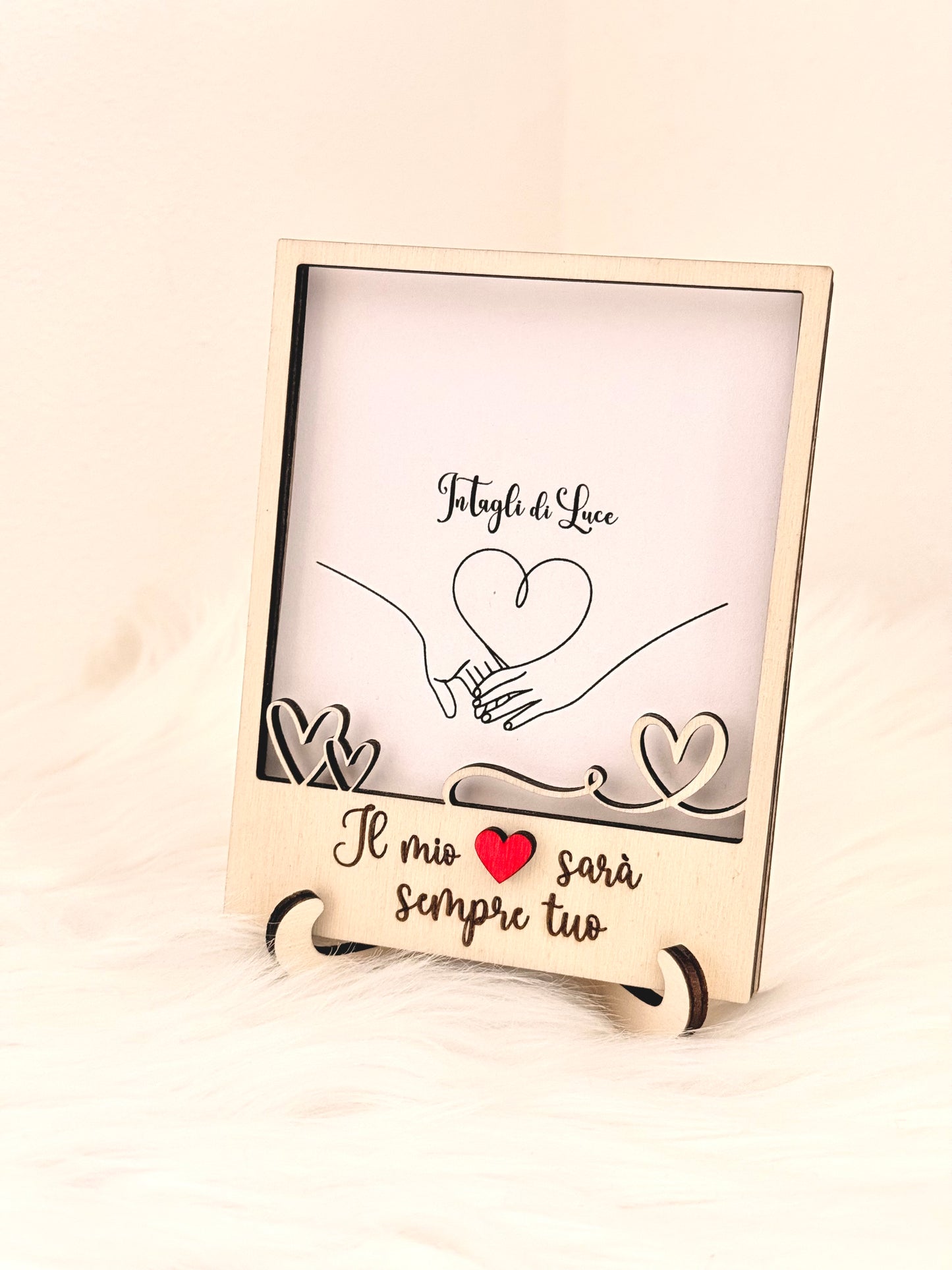Portafoto in legno con frase personalizzata incisa ( oppure nomi/ date per le frasi solo scritte corte) perfetto come regalo per San Valentino.