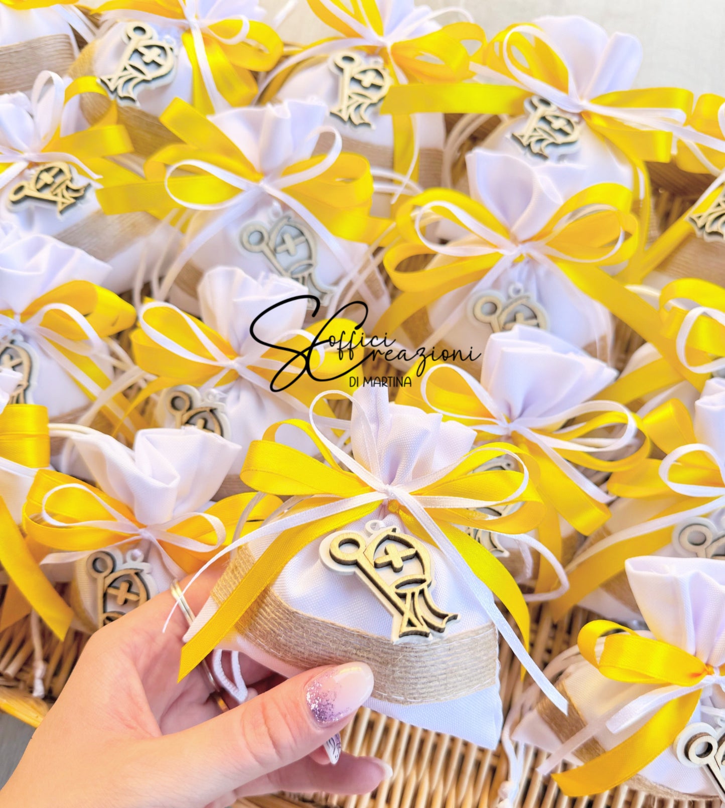 Disponibile con diversi colori di nastrino, perfette per la cresima!