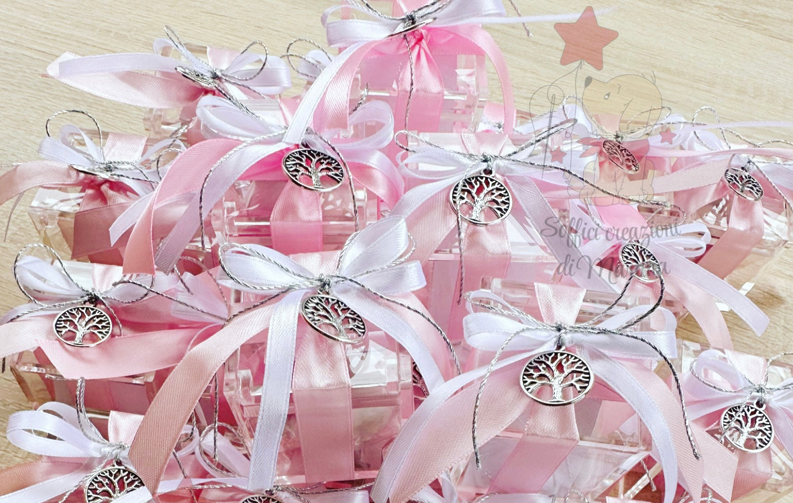 Scatolina in plexiglass con possibilità di scegliere il colore dei nastri ed il ciondolo da applicare ( scrivimi per vederli tutti! )